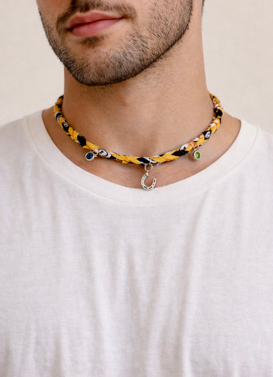 Handmade Braided Fabric”Bandana” Necklace – Yellow & Black